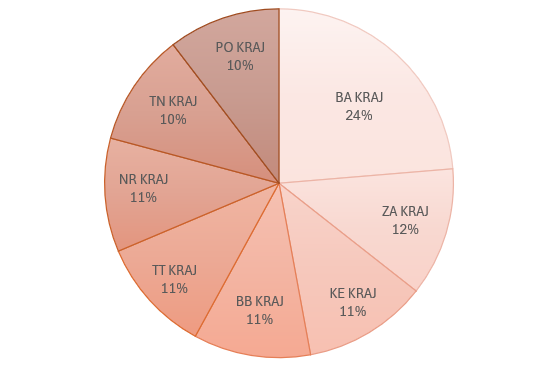 Najviac z celkovo prijatých prostriedkov z asignácie poukázaných firmami aj bežnými občanmi prijali v Bratislavskom (45%), Žilinskom (11%) a Trnavskom kraji (10%). Najmenej z mechanizmu 2% získali prijímatelia v Nitrianskom kraji (6%).