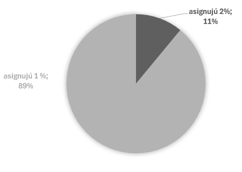 Firiem, ktoré môžu asignovať registrujeme na Slovensku 137 805*, z toho podľa údajov Finančnej správy asignuje len o čosi viac ako polovica (69 688). Sektor takto prichádza o desiatky miliónov Eur. Navyše, až 89% z firiem, ktoré asignujú, asignuje iba 1% z danej z príjmu.